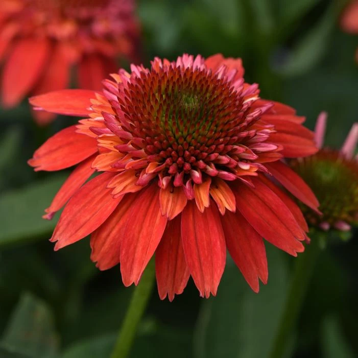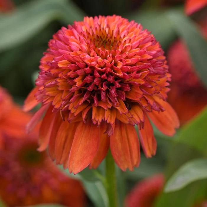 Buy Double Scoop™ Orangeberry Deluxe Coneflower online. Double Scoop™ Orangeberry Deluxe Coneflower features all of the amazing qualities of the Sombrero® series of coneflowers – sturdy stems, bloom quantity, and bloom timing with the amazing qualities of the Double Scoop™ series. This eye-catching, reddish orange flowering selection is double blooming in nature. An excellent attractor for pollinators!