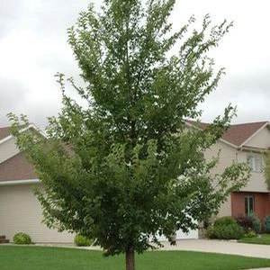 Buy New Horizon Elm online. A beautiful shade tree bearing coarse, dark green foliage which turns an orange-red during the fall. Fast growing with a compact, oval and slightly arching habit.