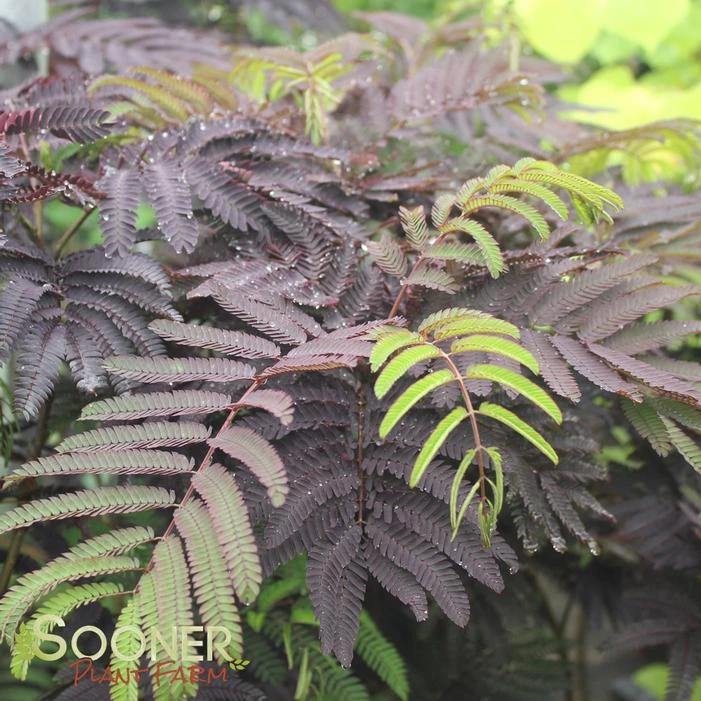 Buy Summer Chocolate Mimosa online. ‘Summer Chocolate’ has ferny leaves that emerge bonze to green in spring and then turn dark burgundy to chocolate in summer. Its flowers are pink and are produced in clusters. Is considered to be a sterile tree.